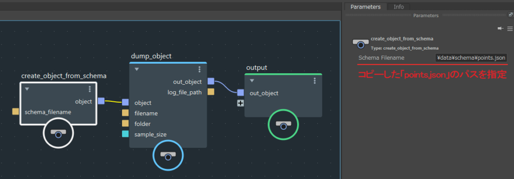 続いてcreate_object_from_schemaノードをdump_objectノードに接続して、