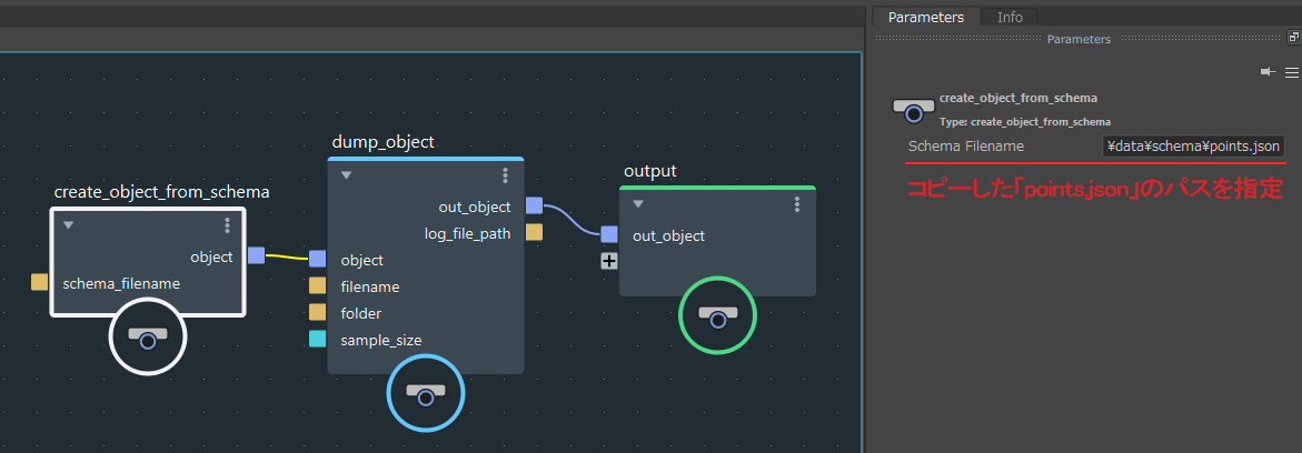 続いてcreate_object_from_schemaノードをdump_objectノードに接続して、