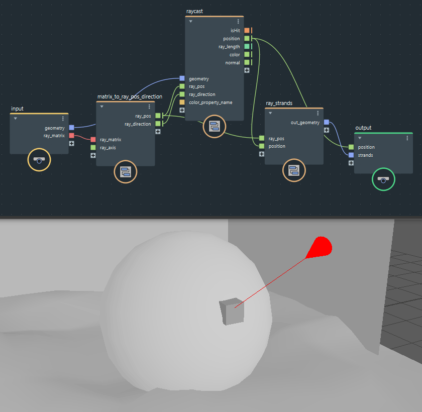 ちなみに既存のノードの近しい処理で「get_closest_locations」ノードがありますが、こちらは最も近い箇所の値を取得する感じなので、特定の方向の値を取得したい場合は今回のレイキャストが良いかなぁと思います。